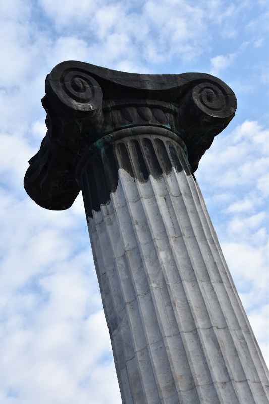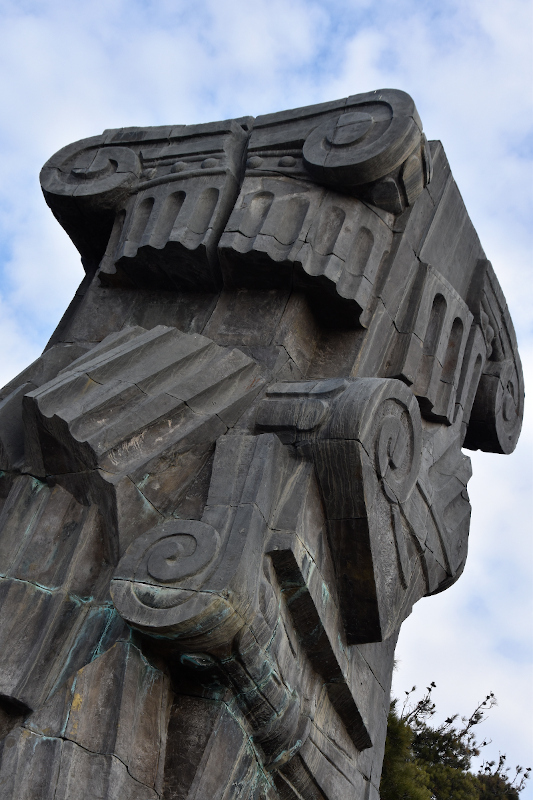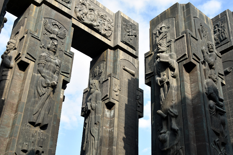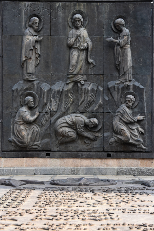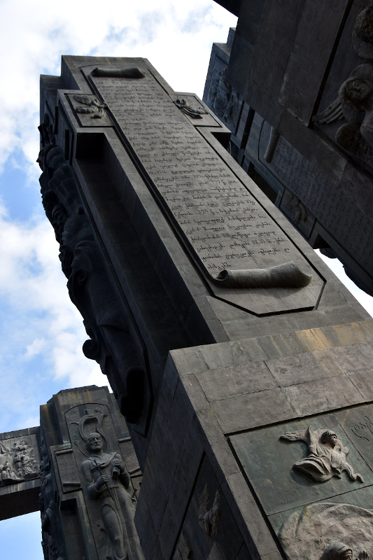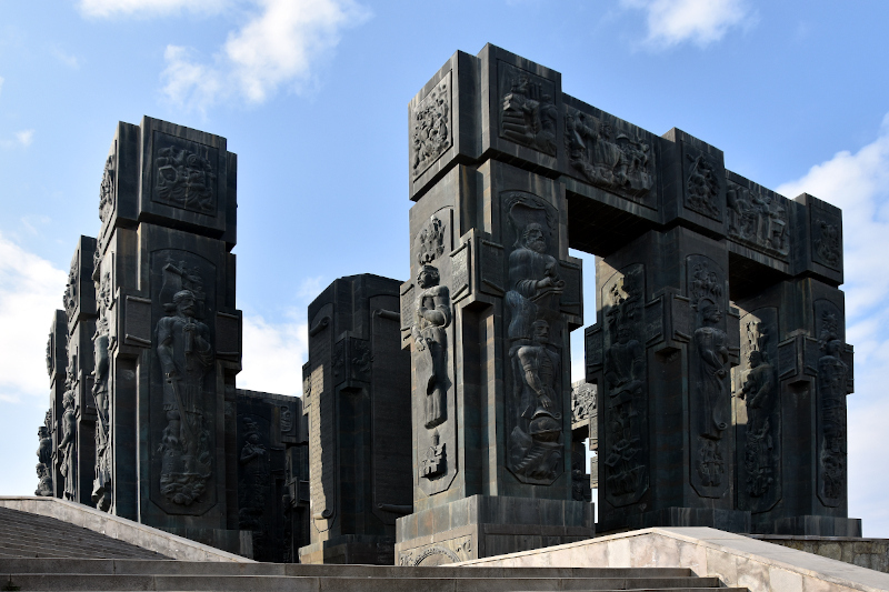 Ein Beispiel: Die Chronicle of Georgia (siehe Fotos). Wikipedia sagt, ein verrückter Künstler namens Zurab Tsereteli habe sie innerhalb eines Jahres gebaut. Äh, wie bitte? 16 Säulen aus Bronze, 35 Meter hoch, vor denen ein Mensch sich wie eine Ameise fühlt; Die hat er mehr oder weniger alleine in einem Jahr hoch gezogen?